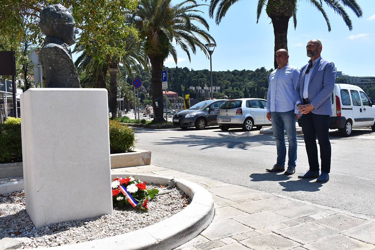 Tim povodom ranije danas u Cavtatu ispred spomenika Franju Tuđmanu vijence su položili pročelnici Miljenko Mikulić i Mario Curić