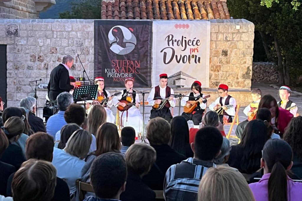 „Proljeće pri dvoru“ održava se od 2019. godine te okuplja sve veći broj publike. Za ovogodišnju manifestaciju KUD je pripremio novi program koji su premijerno izveli pred konavoskom publikom.