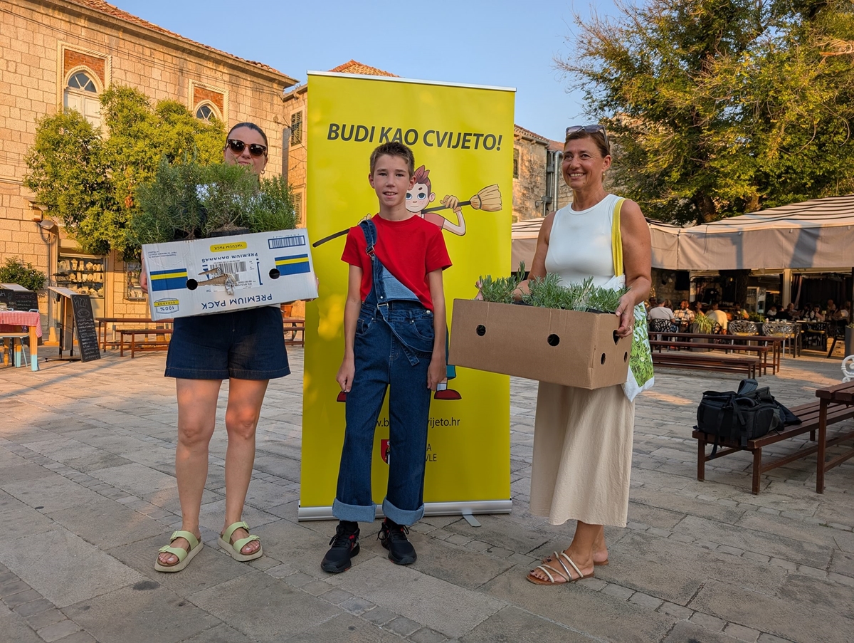 Cvijeto je malima, a i onim malo većima, dijelio mirisne sadnice, crteže Cvijeta, bojice, a Trg dr. Franja Tuđmana u Cavtatu postao je pravo malo ekološko igralište!